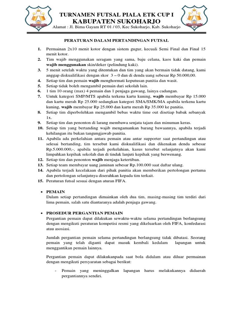 Doc Peraturan Pertandingan Turnamen Futsal Ahmad Sofian Academia Edu